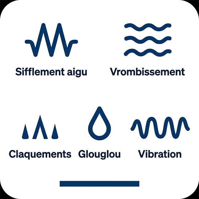 | Type de bruit | Fréquence (Hz) | Cause probable | Solution préconisée |