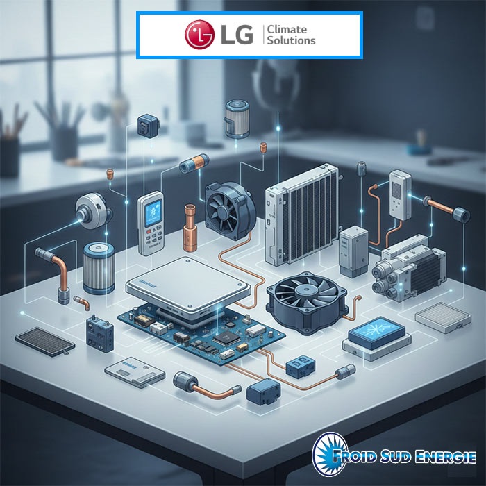 Grâce à notre expertise technique reconnue dans l'Hérault, nos frigoristes certifiés assurent le diagnostic précis et la remise en service rapide de vos installations. Pour garantir une durabilité maximale, nous utilisons exclusivement des pièces détachées d'origine LG (cartes électroniques Inverter, compresseurs, moteurs de ventilateur ou sondes de régulation).